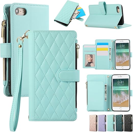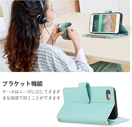 iPhone SE3 ケース 手帳型 レディース iPhone8/iPhone7 携帯ケース 肩掛け ユニバーサル スマホケース iPhone SE第3世代 手帳型ケース レザー iPhone SE2 カバー カード収納 アイフォン SE ショルダー おしゃれ 財布型 マグネット開閉 ストラップ付き キャッシュポケット RFIDブロッキング [4.7インチ] ライトブルー a