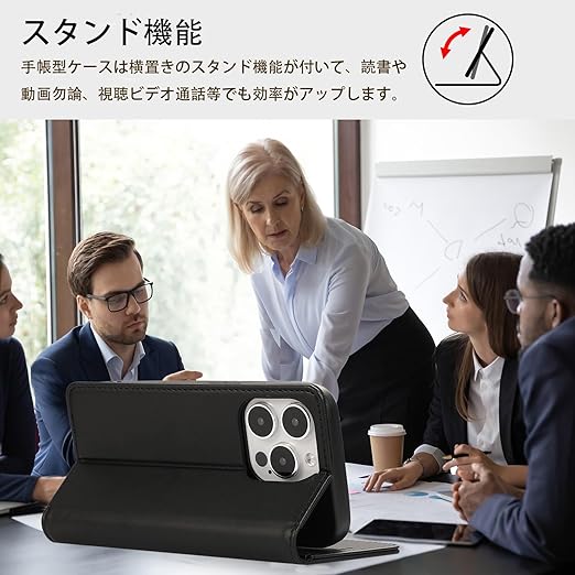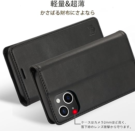 FeeY iphone13 ケース 手帳型 Iphone13 手帳 ケース 耐衝撃 カード収納 マグネット内蔵 スタンド機能付き アイフォン 13携帯カバー 全面保護 iphone13 スマホケース 5G 6.1インチ対応, ブラック a