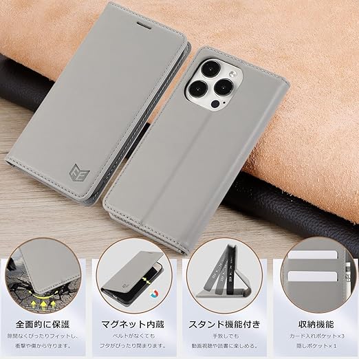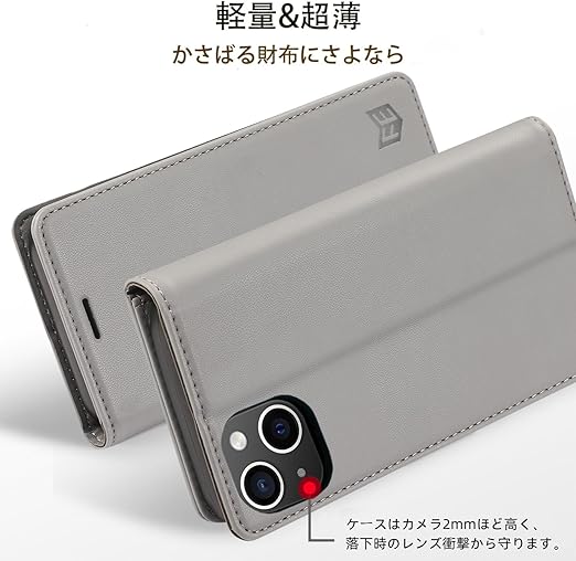 FeeY iphone13 ケース 手帳型 Iphone13 手帳 ケース 耐衝撃TPU素材カード収納 マグネット内蔵 スタンド機能付き アイフォン 13携帯カバー 全面保護 あいふおん13 スマホケース 6.1インチ対応 グレー a