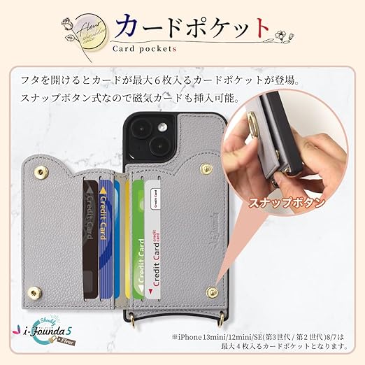 シズカウィル iPhone 16 Plus 用 ケース ショルダー カバー ショルダーストラップ アイファンデ5 ショルディー フルール アッシュローズ 1個入り a