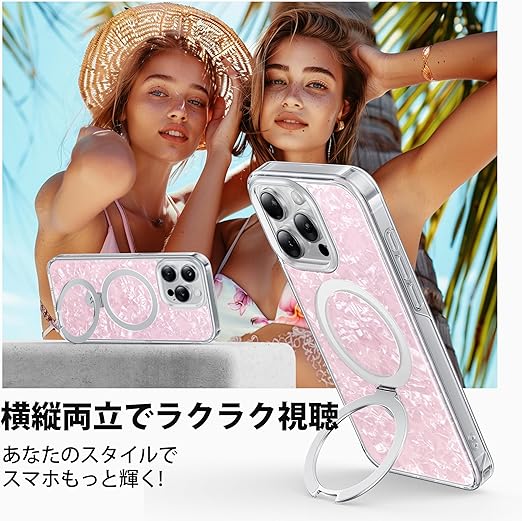 【スタンド機能・Magsafe対応】 CASEKOO iPhone 15 Pro 用ケース キラキラ 真珠母貝 おしゃれ黄変防止 耐衝撃 MIL規格 滑り止め リング付き ストラップホール付き ワイヤレス充電 アイフォン 15プロ カバー いphone15pro ケース プレゼント(パールピンク) a