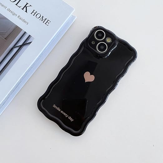 QLTYPRI iPhone 15 Plus ケース iPhone 14 Plus 用 ケース TPUカバー ウェーブ おしゃれ 韓国 可愛い ハート柄 薄型 軽量 耐衝撃 スマホケース ワイヤレス充電対応 ストラップホール付き アイフォン 15 Plus/iPhone 14 Plus ケース 6.7インチ 対応 - ブラック a