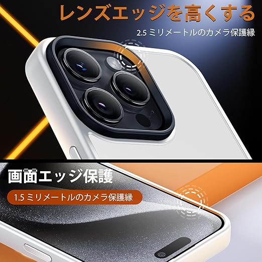 COSOIK iPhone 15 Pro Max 用 ケース 半透明 衝撃吸収 米軍MIL規格取得 マット感 黄ばみなし レンズ全面保護 耐衝撃ストラップホール付き 6.7インチ アイフォン 15 Pro Max用カバーラネ しろ a
