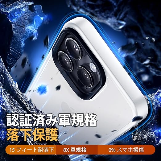 【米国MIL規格取得・超高耐衝撃性】 米軍基準のタフネスを誇るiPhone 15 Pro Max ケース。 エアクッション技術を採用した四隅のデザインは、強力な全周保護システムを提供し、四隅のエアクッションが損傷を吸収し、あらゆる方向から携帯電話を保護します。