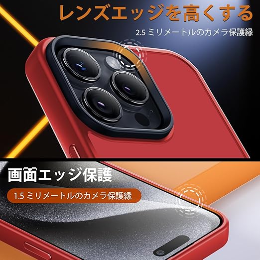 COSOIK iPhone 15 Pro Max 用 ケース 半透明 衝撃吸収 米軍MIL規格取得 マット感 黄ばみなし レンズ全面保護 耐衝撃ストラップホール付き 6.7インチ アイフォン 15 Pro Max用カバーラネ あか a