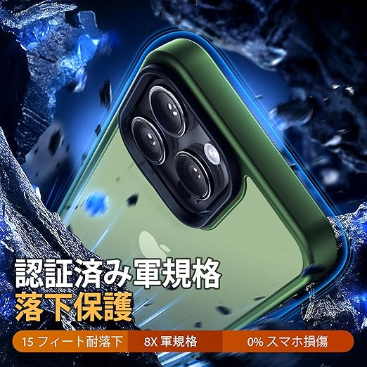 【米国MIL規格取得・超高耐衝撃性】 米軍基準のタフネスを誇るiPhone 15 Pro Max ケース。 エアクッション技術を採用した四隅のデザインは、強力な全周保護システムを提供し、四隅のエアクッションが損傷を吸収し、あらゆる方向から携帯電話を保護します。