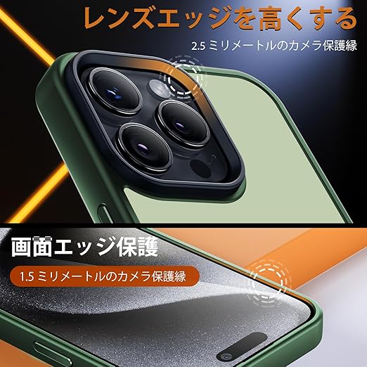 COSOIK iPhone 15 Pro Max 用 ケース 半透明 衝撃吸収 米軍MIL規格取得 マット感 黄ばみなし レンズ全面保護 耐衝撃ストラップホール付き 6.7インチ アイフォン 15 Pro Max用カバーラネ グリーン a