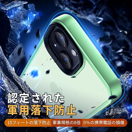【米国MIL規格取得・超高耐衝撃性】 米軍基準のタフネスを誇るiPhone 15ケース。 エアクッション技術を採用した四隅のデザインは、強力な全周保護システムを提供し、四隅のエアクッションが損傷を吸収し、あらゆる方向から携帯電話を保護します。