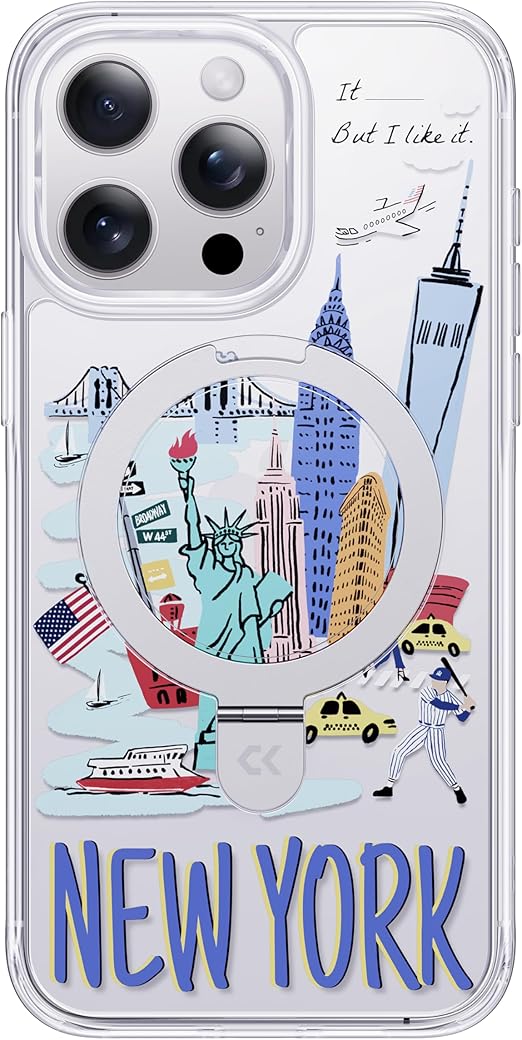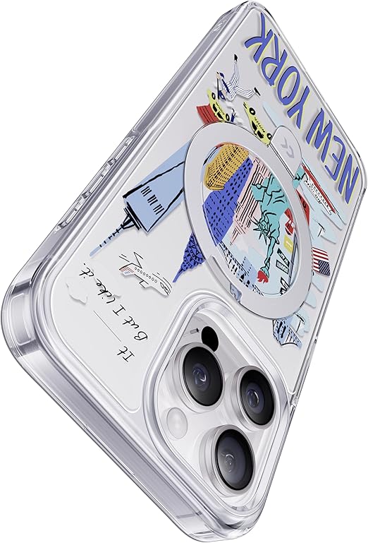 【スタンド機能・MagSafe対応】 CASEKOO iPhone 15 Pro 用ケース クリア 【NewYorkメモリー】 限定版 おしゃれ パターン スタンド 横縦両立 便利 ワイヤレス充電 黄ばみなし 可愛い iphone 15 pro ケース 上品 ファッション 滑り止め 人気 耐衝撃 いphone15pro ケース プレゼント (クリア-NewYork) a