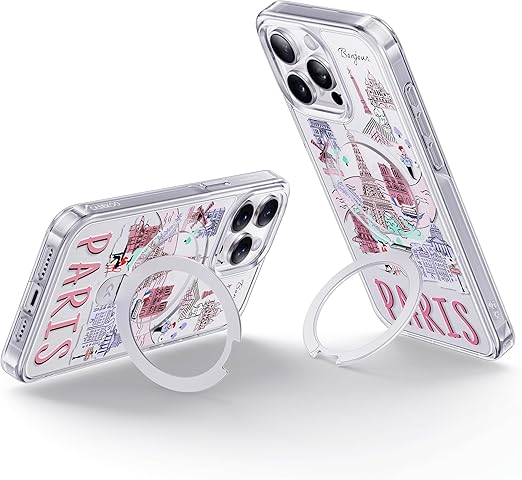 【スタンド機能・MagSafe対応】 CASEKOO iPhone 15 Pro 用ケース クリア 【パリメモリー】 限定版 スタンド付き 横縦両立 便利 ワイヤレス充電 黄ばみなし 大人 可愛い iphone 15 pro ケース おしゃれ 上品 ファッション 滑り止め 人気 耐衝撃 いphone15pro ケース プレゼント (クリア-Paris) a