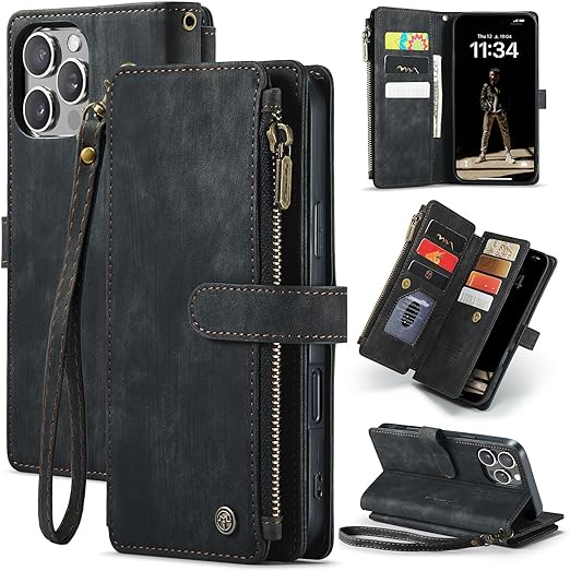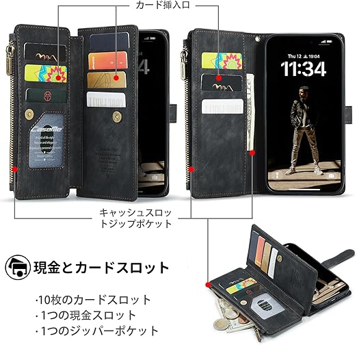 SeGinn iPhone 16 Pro Max 対応 ケース 手帳型 カバー PUレザー 多財布デザイン スタンド機能付き 磁気バックル付き カード収納 コイン収納 アイフォン 16 プロマックス ケース 手帳型 大容量財布型 収納ポケット 衝撃防止 擦り傷防止 スクリーン/カメラ保護 実用性高 iphone 16 pro max 財布型ケース (ブラック) a