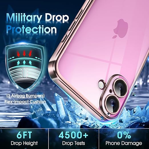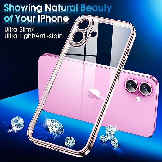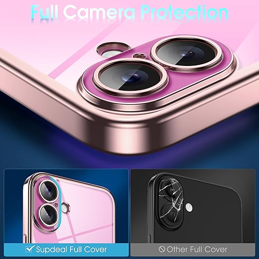 Supdeal iPhone 16 ケース クリア 透明電話カバー 米軍MIL規格 軽量耐衝撃 カメラレンズ保護 シリコン 擦り傷防止 黄変防止 指紋防止 TPU 保護ケース ワイヤレス充電対応 極薄でソフトな素肌感覚 高精細透明 アイフォン 16 カバー 6.1インチ ローズ a