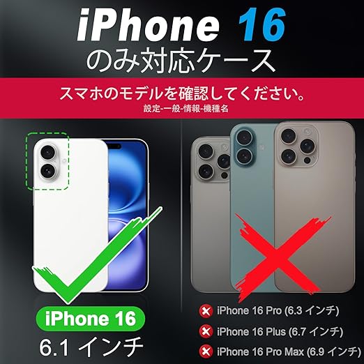 【対応機種・型番確認】iPhone 16 (6.1インチ、2024年発売)のみに対応しておりますが、他の型番が併用できません。注文する際に間違いないようご確認頂ければ幸いです。万が一商品に初期不良・破損などがある場合、注文履歴画面より出品者にご連絡お願い致します。
