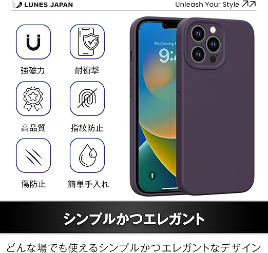LUNES iPhone 13 Pro ケース Magsafe対応 カメラ保護 スマホケース 耐衝撃 ワイヤレス充電 シンプル 全面保護 いPhone13 プロ 用 マグセーフ対応 シリコン カバー マグネット搭載 指紋防止 黄ばみなし (iphone13Proケース, Purple) a