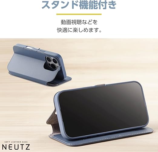 エレコム iPhone 16 Pro ケース カバー 手帳型 ソフトレザー 磁石付き カードポケット×2 スタンド機能 ワイヤレス充電対応 ストラップホール付き 4つ角エアークッション NEUTZ ブルー PM-A24CPLFY2BU a