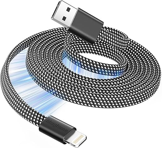 Magtame Iphone-充電ケーブル 2.4A急速充電 自動巻きつき フラット平形 ライトニングケーブル MFi認証 アイフォン充電ケーブ 形状記憶保持lightningケーブル iPhone14/13/12/11/X/Pro Max/iPad/AirPods等対応(1M-ブラック) a