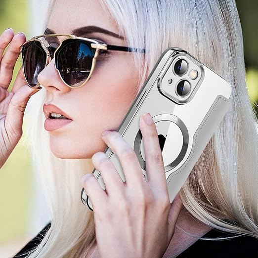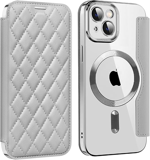 KeKeYou iPhone 13 用 ケース 手帳型 クリア Magsafe対応 背面透明 キルティング 高級なPUレザー スマホケース ゴージャス カード収納 おしゃれ 人気財布型 格子柄 カバー アイフォン13 用 手帳カバー ケース (iPhone 13,チタングレー) a