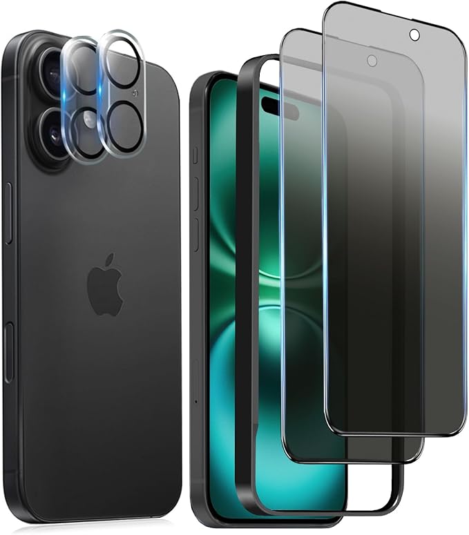 DZHFU【4枚入り】 iPhone 16 plus 強化ガラスフィルム 6.7インチ 28°覗き見防止 全面保護フィルム 硬度10H 滑らかなタッチ操作 指紋付着防止 気泡防止 ガイド枠付き 貼り付けは簡単 【アイフォン16 plus 強化ガラスフィルム(2枚入り)+レンズ保護フィルム (2枚入り)】 a