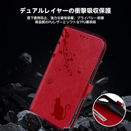 iPhone16 ケース 手帳型 財布型 iPhone 16 携帯カバー アイフォン16 ケース 横置きスタンド機能 iPhone 16スマホカバー 6.1インチ アイフォン16 手帳型ケース iphone 16 スマホケース マグネット式 iPhone16保護カバー Jajaful iPhone 16 case かわいい猫柄 耐衝撃 カード収納 高級PUレザー TPU素材 赤 a