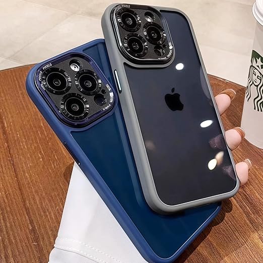 iyite iPhone 15 Pro Max ケース、一体型カメラレンズ保護機能付き、[ミルグレード耐衝撃防御] 透明バックプレーン保護ケース、iPhone 15 Pro Max 用、マットグレー a