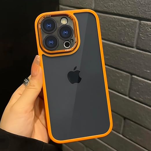 iyite iPhone 13 Pro ケース、一体型カメラレンズ保護機能付き、 [ミルグレード耐衝撃防御] 透明バックプレーン保護ケース、iPhone 13 Pro 用、オレンジ a