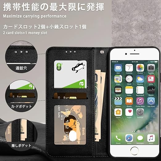 ZHUAZHULE iPhone SE3 ケース iPhone SE2 ケース iPhone8 iPhone7 ケース 手帳型 アイフォンSE 第3世代 第2世代 8 7 財布型 レザー スマホケース カード収納 マグネット式 スタンド機能 高級PUレザー 携帯カバー 耐衝撃 レンズ保護 擦り傷防止 ストラップホール付き おしゃれ 人気 (ブラック) a