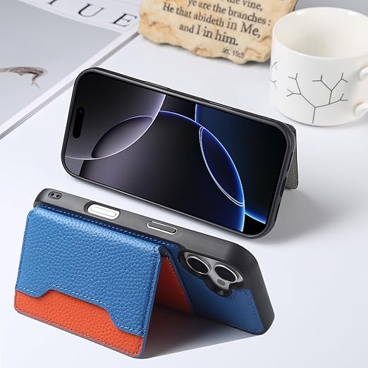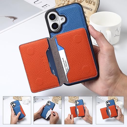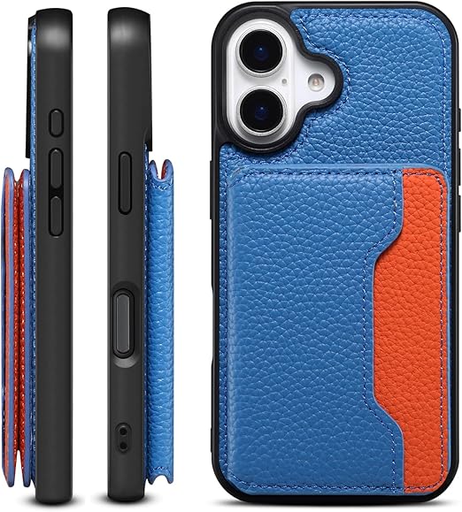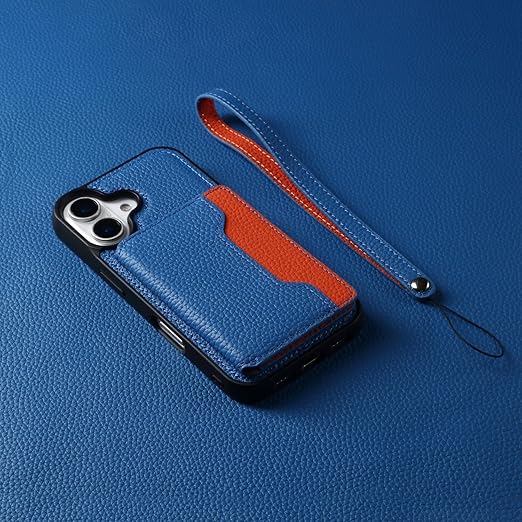 【背面手帳型・スタンド機能・2024 新登場】iPhone 16 ケース 本革 牛革 カード収納*3 上質な手触り ハンドストラップ付き アイフォン 16 カバー 柔軟なTPU素材 耐衝撃 全面保護 横置きスタンド スマホケース Keep-series(iPhone16、ブルー+オレンジ) a