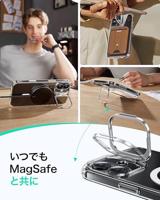 【より強力な磁気吸着】1,500 gの吸着力を持つ強力な内蔵磁石により、素早く簡単にワンタッチでワイヤレス充電が可能で、MagSafeアクセサリーを確実に吸着します。対応機種:iphone16ケース