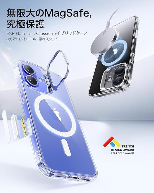 【デザイン受賞シリーズ!】ESR iPhone 16 ケース Magsafe対応 カメラコントロール 米軍MIL規格の保護 耐黄変 耐衝撃 隠れスタンド iPhone16ケース スマホケース 傷防止背面 iPhone16 ケース対応 アイフォン16 ケース いphone16 ケース対応 Classicシリーズ クリア a