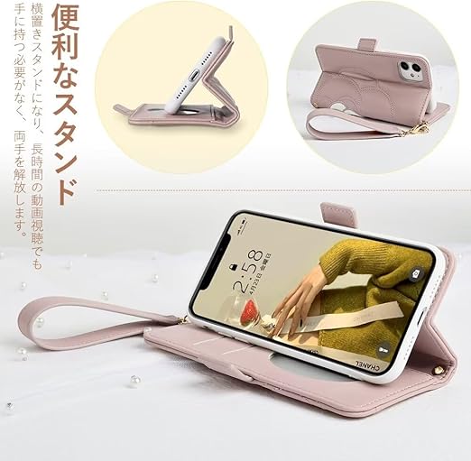 ?多彩な機能性?スマホケースの内側にはカードポケット2つとサイドポケット1つ付き,交通系カード、クレジットカード、レシート、お札などが収納できます。メイク直しミラー付き。外出先でお化粧直しや身だしなみチェックできる便利なアイテムです。