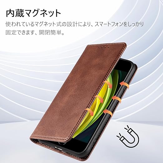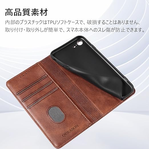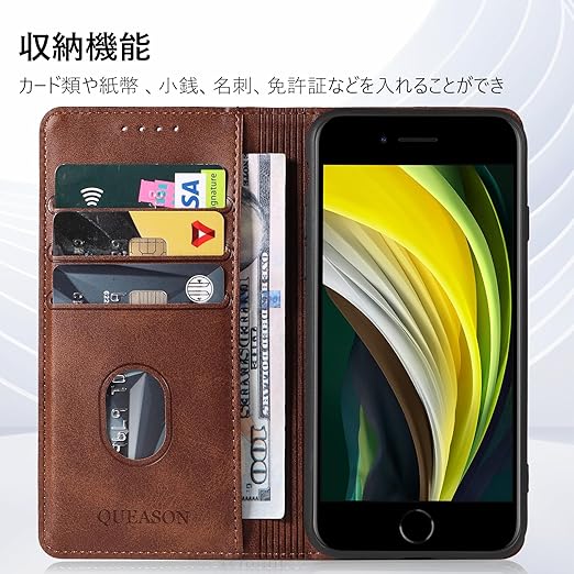 QUEASON【iPhone SE 第2世代/第3世代/iPhone7/iPhone8 通用手帳ケース】iphonese第2世代 ケース 手帳型 携帯ケース iphonese第3世代 ケース 手帳型 スタンド機能 iphone8 ケース 手帳型 iphone7ケース 手帳型 薄型ケース カード収納 落下防止 マグネット式 耐衝撃 全面保護 防塵(ブラウン) a