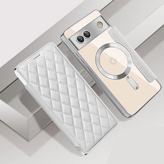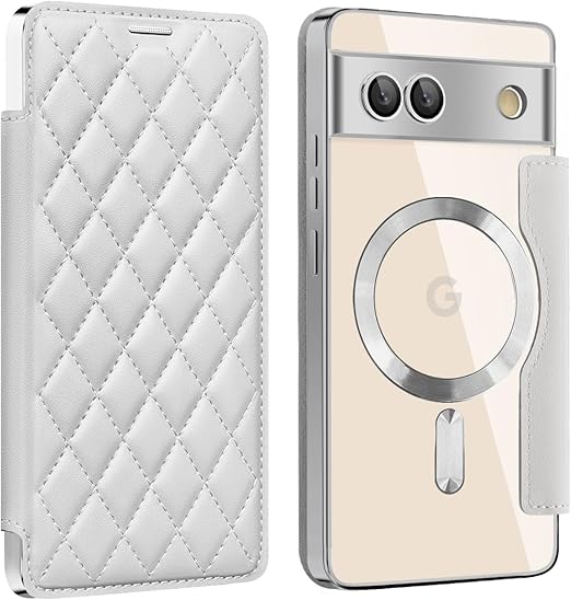 KeKeYou Google Pixel 7a 用 ケース 手帳型 クリア Magsafe対応 背面透明 キルティング 高級なPUレザー スマホケース ゴージャス カード収納 おしゃれ 人気財布型 格子柄 カバー ピクセル 7a 用 手帳カバー ケース (Pixel 7a用,チタングレー) a