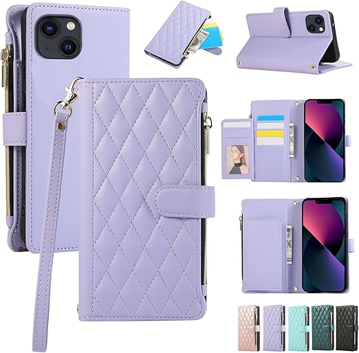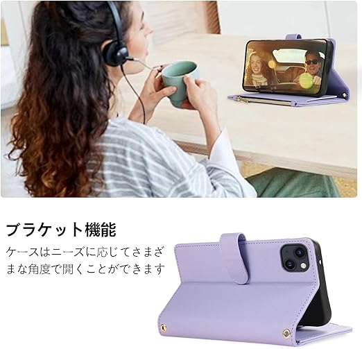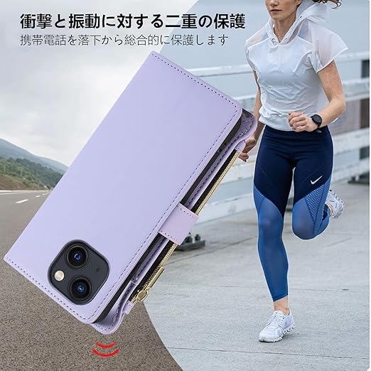 Noaivoky For iPhone 13 / いphone14 ケース 手帳型 iPhone13 ケース 手帳型 アイフォン14 スマホケース iphone 14 ショルダー 財布型 アイホン14 カード収納 スマホカバー アイフォン13 スタンド機能 ストラップ あいふぉん14 小銭入れ チャック付き RFIDブロッキング 耐衝撃 携帯ケース アイホン13 おしゃれ - ライトパープル a