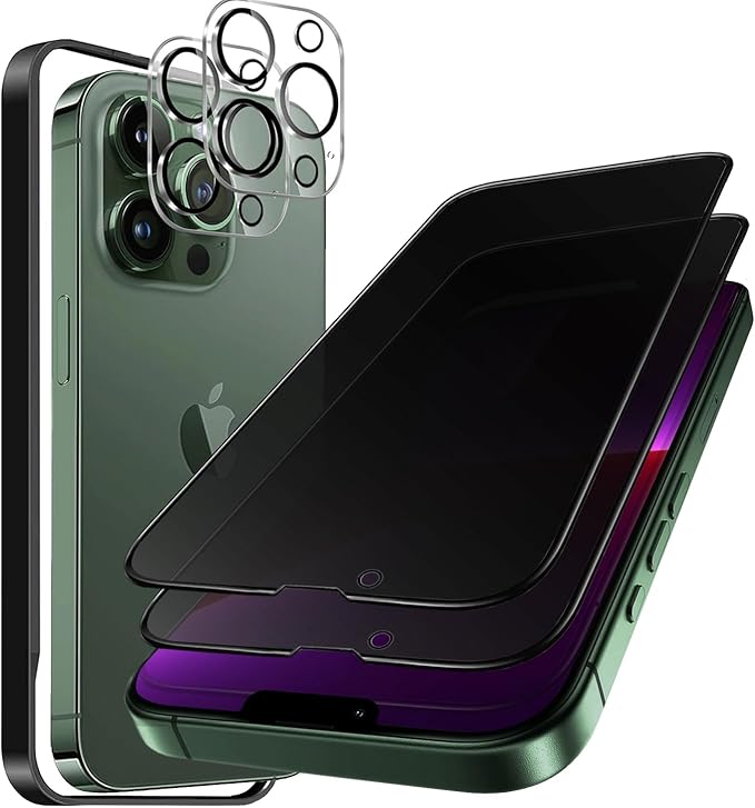 【4枚入り】ガラスフィルム iPhone 13promax 用 強化ガラスフィルム 28°覗き見防止 全面保護 プライバシー 液晶保護フィルム 6.7インチ対応 気泡ゼロ 指紋防止 ガイド枠付き 貼り付け簡単 【アイフォン13 プロマックス強化ガラスフィルム(2枚入り)+レンズ保護フィルム (2枚入り)】 a