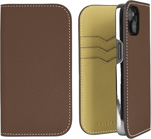 Valorex iPhone15 スマホケース 手帳型 本革ケース イタリア製レザー 携帯カバー スマートフォン カード収納 軽量 エトープ×ブロンド, iPhone15 a