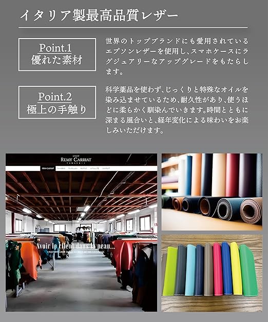 【素材】素材には高級ブランドが使用する高品質のエプソンレザーを採用。世界中のブランドから評価される高級本革です。 手に取って頂ければ本革の素材の良さがわかって頂ける商品となっております。