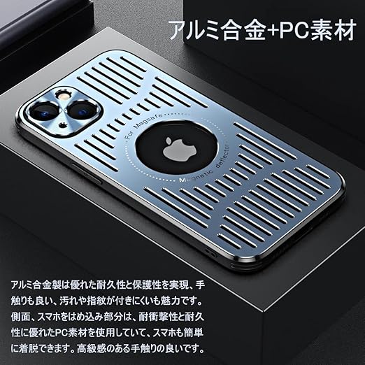 YUZOR iPhone 15plus 用 ケース アルミ合金 冷却 放熱 スマホケース マグネット搭載 耐衝撃 米軍保護工学・Magsafe対応 アイフォン15plus カバー ストラップホールあり 6.7インチ (iPhone15plus 青) JS-sr-15plus-lan a