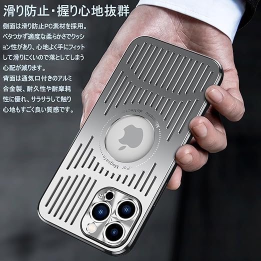 【アルミ合金+PC素材】アルミ合金製は優れた耐久性と保護性を実現、手触りも良い、汚れや指紋が付きにくいも魅力です。側面、スマホをはめ込み部分は、耐衝撃性と耐久性に優れたPC素材を使用していて、スマホも簡単に着脱できます。高級感のある手触りの良いです。