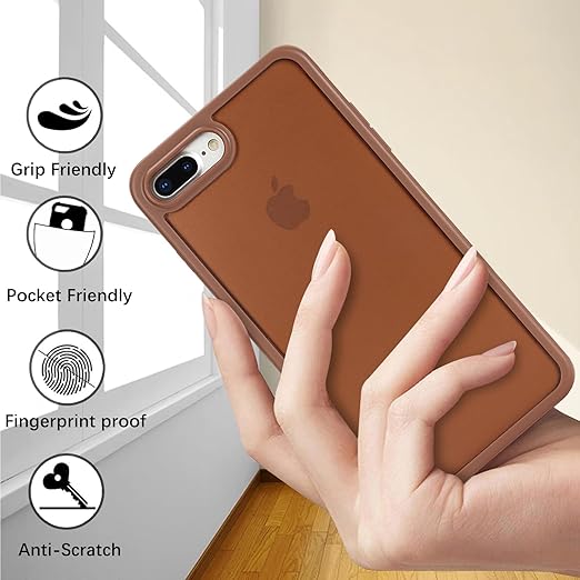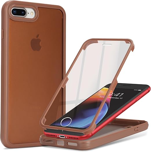 Lipvina iPhone 7Plus / 8Plus用ケース 両面強化ガラス全面保護 米軍耐衝撃規格準拠 半透明マットな質感 黄変防止加工済み 縦横対応で使いやすいデザイン アイフォン 透 ケース・スマホケース iPhone 7Plus / 8Plus 人気 5.5インチ(茶色) a