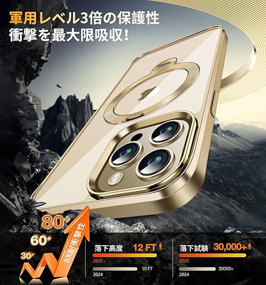 【本当の進化・360°定点回転神スタンド】このiPhone 13 Pro Maxケースは革新的な360度定点回転スタンドを採用し、縦置き・横置きどちらでも0°から170°まで自由に調整できます。iPhone 13 Pro Max専用設計で、ビデオ通話や映画鑑賞時に両手を完全に解放し、快適な使い心地を存分に与えます。このアイホン13プロマックスケースのヒンジは強化航空材料を使用して改良されており、耐久性と安定性に優れ、リングの緩みや破損のリスクを完全に解消しました。30,000回の耐久テストをクリ