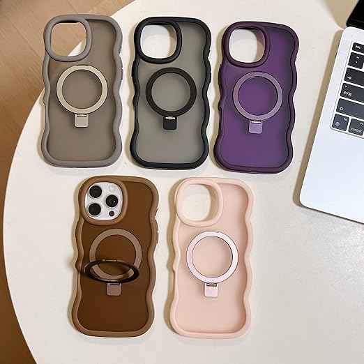UEEBAI 対応 iPhone 15 Pro 用の ケース 半透明 TPU ウェーブデザイン スマホケース 可愛い 人気 おしゃれ ケース Magsafe対応 横縦両立 薄型 軽量 マグネット搭載 波型 バンパー スマホケース - パープル a