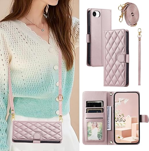 iPhone SE3 ケース 手帳型 第2世代 第3世代 iphone8 iphone7 財布型 ショルダー ストラップ カード収納 アイホンseケース アイフォン se スマホカバー 携帯電話ケース iphone se se2 カバー 肩掛け 斜め掛け スタンド機能 アイフォン8ケース アイホン7 カード iphoneSE 2020 全面保護 耐衝撃 おしゃれ 高級レザー - ローズゴールド a