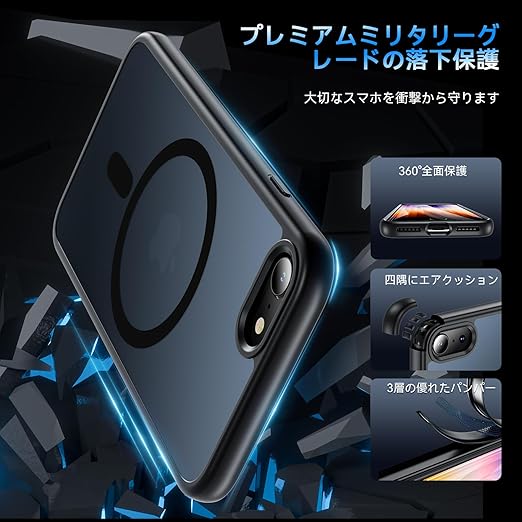 【iPhone4.7インチ専用】:iPhone SE(2022)、iPhone SE(2020)、iPhone 8、iPhone 7(全て4.7インチ)に対応しています。10FTの落下テストをクリアした四隅エアクッション設計で、衝撃吸収率90%以上。TPU+PCの3層構造がスマホを360°全面保護します。便利なストラップホールも備えており、持ち運びが楽になり、より快適にご使用いただけます。