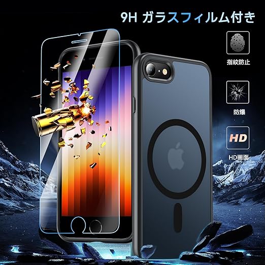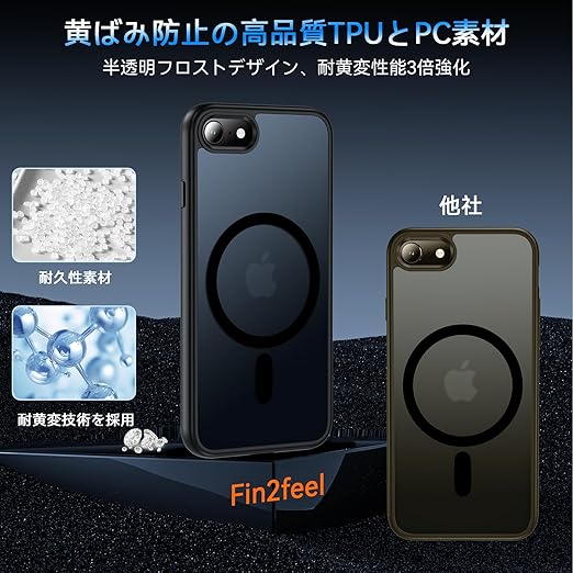 Fin2feel For iPhone SE3/SE2ケース【MagSafe高速充電対応】ガラスフィルム付き 米軍MIL規格 耐衝撃 黄ばみ防止 指紋防止 TPU + PC素材 iPhone 8/7 4.7インチ対応(ブラック) a