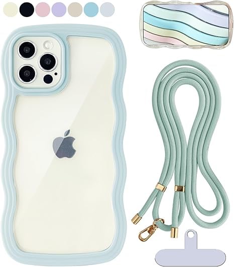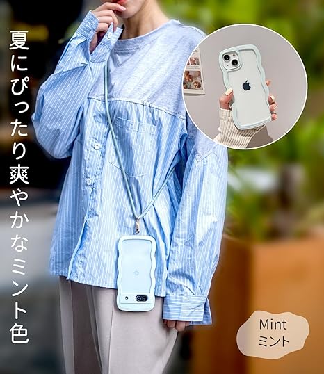 shinyle iphone 13 クリアケース 波型 ショルダー 可愛い スマホケース うねうね おしゃれ いphone13 ストラップ付き 首掛け 肩掛け 耐衝撃 韓国 透明 推し活 ワイヤレス充電対応 ストラップホール付き アイフォン13 かわいい おしゃれ スマホカバー なみなみ ウェーブ あいふぉん13 携帯ケース 透明カバー ミント a