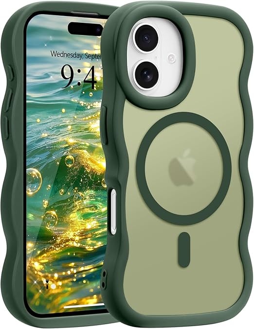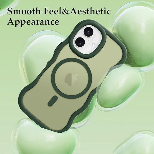 Pepmune iPhone 16 ケース MagSafe対応 ウェーブ 半透明 滑り止め おしゃれ 可愛い 韓国 耐衝撃 指紋防止 ワイヤレス充電 スマホケース ストラップホール付き(ダークグリーン) a