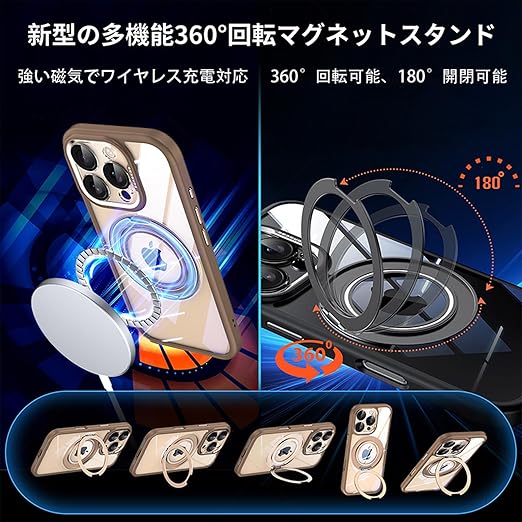 【2025新型360度回転スタンド】隠れのリングスタンドは360°回転でき、横置きも縦置きも自由自在で便利です、オンラインショッピングや家族、友人とのビデオを通話する時は縦置き、映画や短編動画を見る時は横置き、何かを手に持つときに指に掛けるのもとでも便利です、薄くて持ちやすい。リングを回転するときのカチ