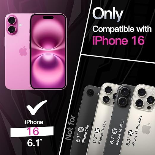 [互換性] iPhone 16 6.1インチ専用に設計されています。注意: iPhone 16 Plus / 16 Pro / 16 Pro Maxには対応しません。このスリムなケースはワイヤレス充電をまったく妨げません