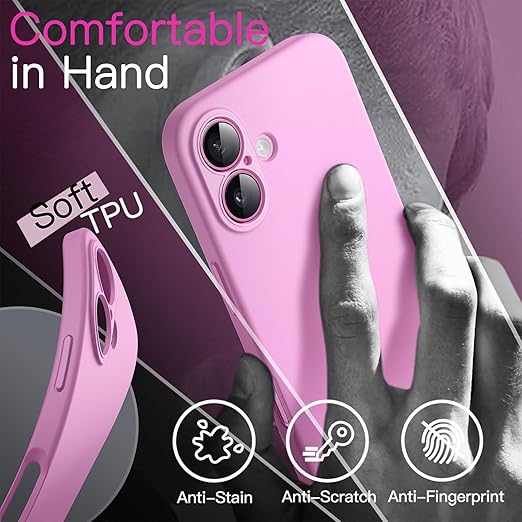 JETech iPhone 16 6.1 インチ 用 スリムフィットケース カメラレンズ完全保護 マット仕上げ ソフトTPU 薄型電話保護カバー 耐衝撃 (ピンク) a
