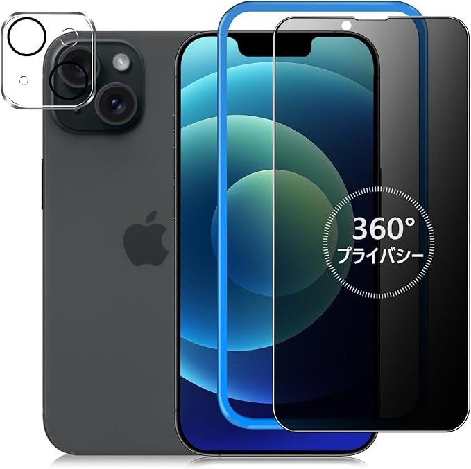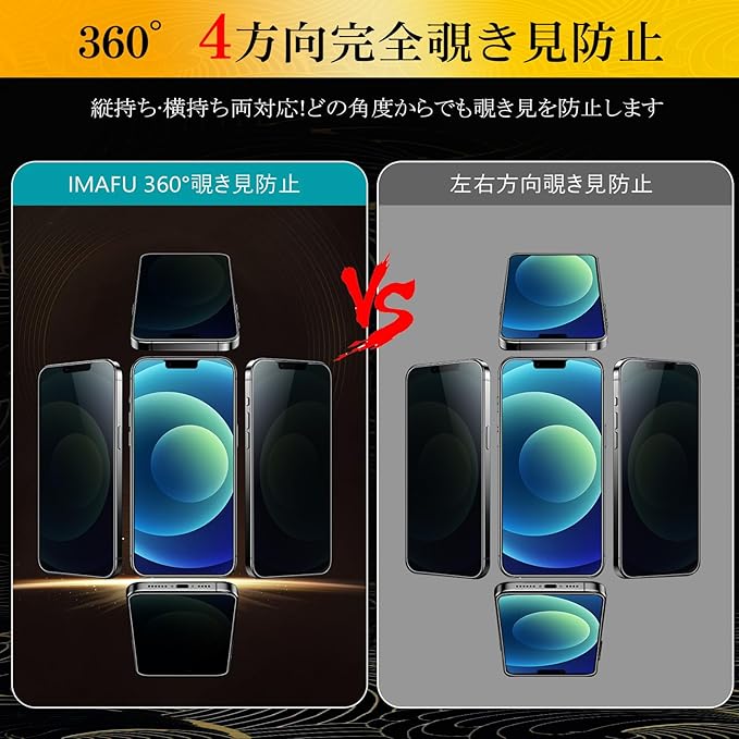 IMAFU 360度 覗き見防止 iPhone13 用 ガラスフィルム いPhone13 用 フィルム 360 全方向 覗き見 防止 上下左右 見えない アイフォン13 用 強化ガラス プライバシー 画面 保護 シート 【カメラフィルム付き/ガイド枠付き 】 a